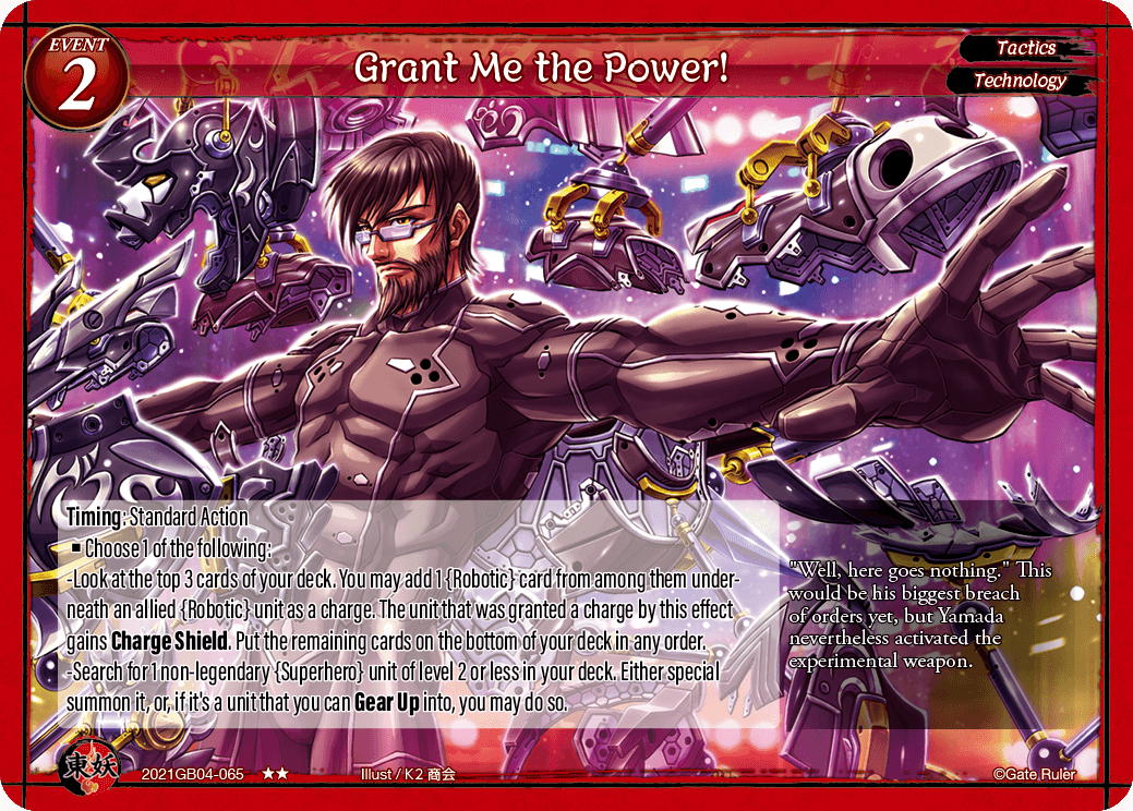 -Search for 1 non-legendary {Superhero} unit of level 2 or less in your deck. Either special summon it, or, if it's a unit that you can 【Gear Up】 into, you may do so.