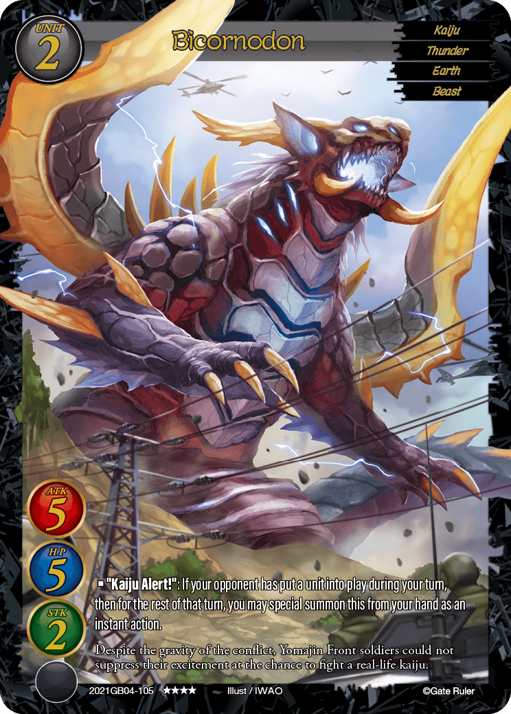 ■"Kaiju Alert!": If your opponent has put a unit into play during your turn, then for the rest of that turn, you may special summon this from your hand as an instant action.