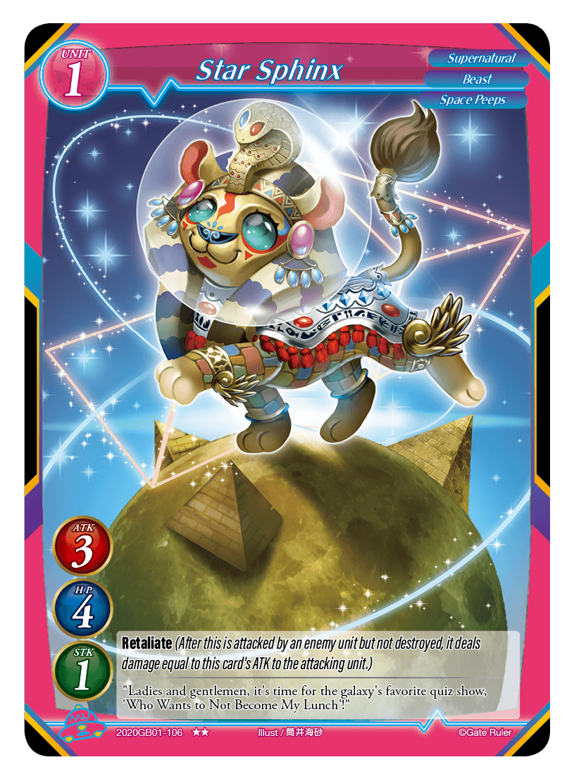 【Retaliate】 (After this is attacked by an enemy unit but not destroyed, it deals damage equal to this card's ATK to the attacking unit.)
