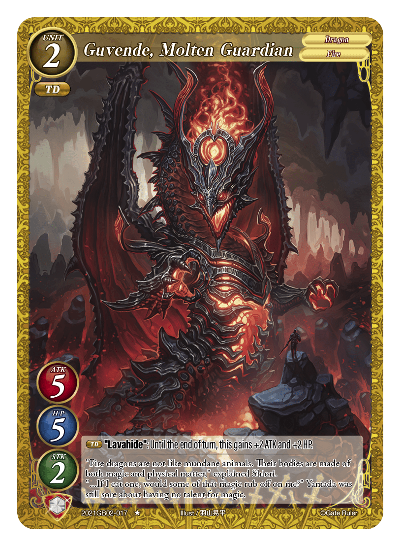 【TD】 "Lavahide": Until the end of turn, this gains +2 ATK and +2 HP.