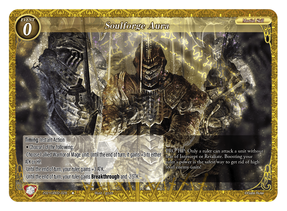 -Choose 1 allied Warrior or Mage unit. Until the end of turn, it gains +3 to either ATK or HP.