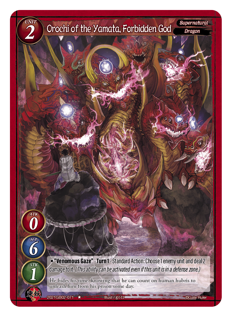 ■"Venomous Gaze" - 【Turn 1】 - Standard Action: Choose 1 enemy unit and deal 2 damage to it. (This ability can be activated even if this unit is in a defense zone.)