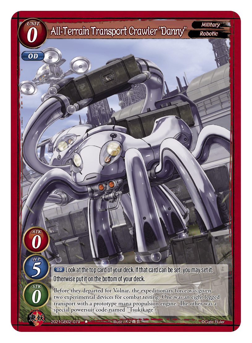 Before they departed for Volnar, the expeditionary force was given two experimental devices for combat testing. One was an eight legged transport with a prototype mana propulsion engine. The other was a special powersuit code-named "Tsukikage".
