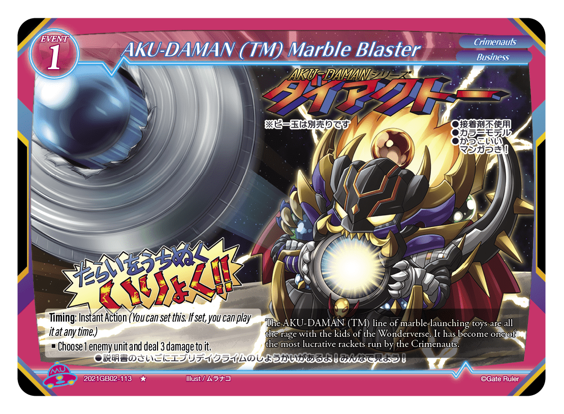 The AKU-DAMAN (TM) line of marble-launching toys are all the rage with the kids of the Wonderverse. It has become one of the most lucrative rackets run by the Crimenauts.