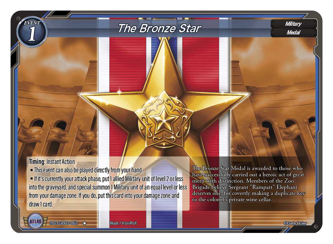 The Bronze Star Medal is awarded to those who have successfully carried out a heroic act of great merit with distinction. Members of the Zoo Brigade believe Sergeant "Rampart" Elephant deserves one, for covertly making a duplicate key to the colonel's private wine cellar.