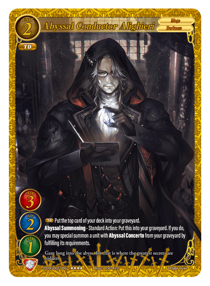【Abyssal Summoning】 - Standard Action: Put this into your graveyard. If you do, you may special summon a unit with 【Abyssal Concerto】 from your graveyard by fulfilling its requirements.