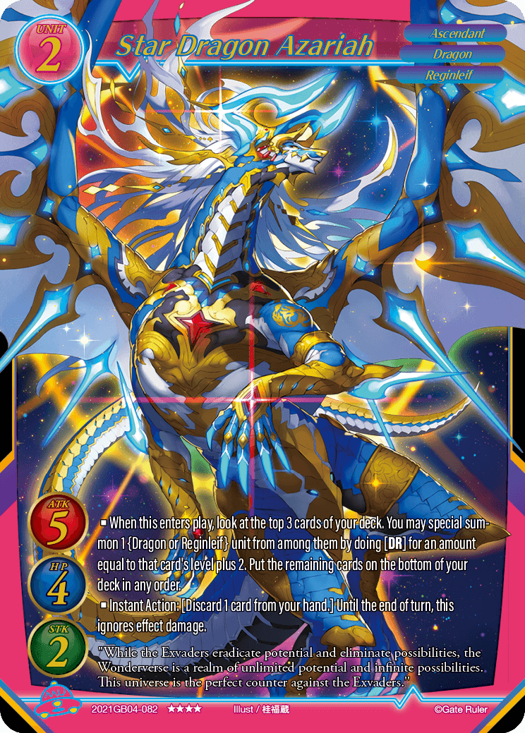 ■When this enters play, look at the top 3 cards of your deck. You may special summon 1 {Dragon or Reginleif} unit from among them by doing [【DR】] for an amount equal to that card's level plus 2. Put the remaining cards on the bottom of your deck in any order.